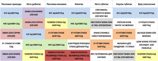 Табела са прегледом привредних друштава која се налазе на првих пет места листа: